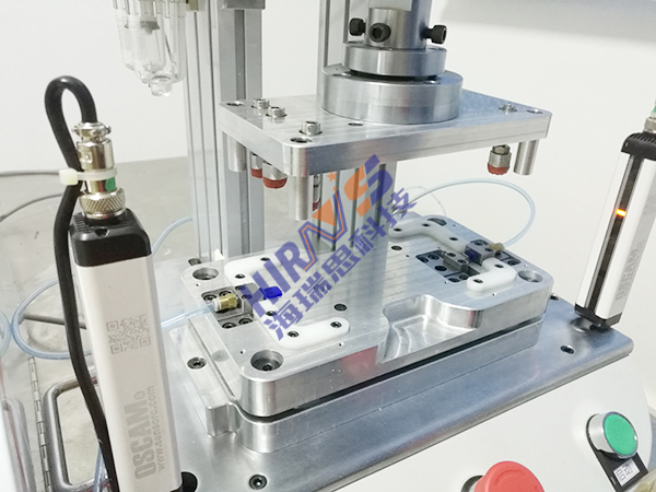 3. 检测开始前,要先连接好气密性检测仪的电源、气源、并把测试口连接到手机防水测试的工装,双手启动手机气密性测试仪,然后气密性检测经过充气、稳压、测试的过程,得出空气的泄露率;