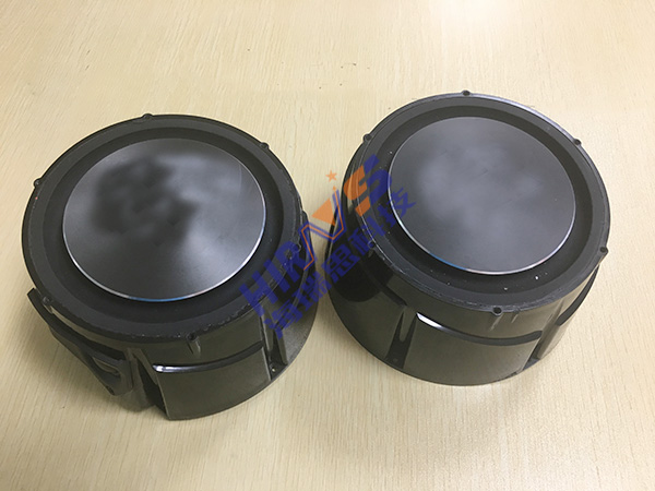 1. 通过对音响的观察我们能看到音响的正上方有几个很小的出气孔,出声区的下凹圆形是一层音响膜,可以通过模具压住上方固定往内部充入气体;