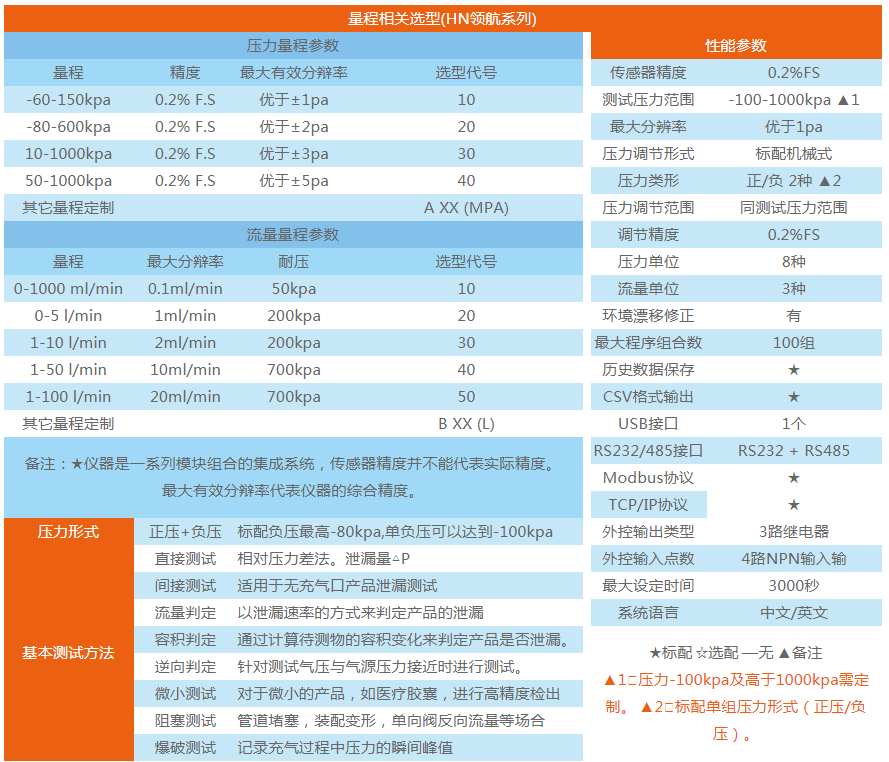 5、标配采用海瑞思全功能阀岛,正、负两种压力形式和8种测试方法;可以将两种压力形式及五种测试方法编写成20多种测试功能,