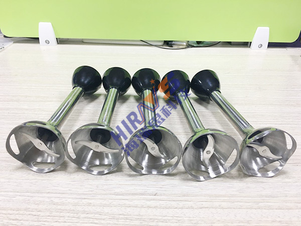 1. 搅拌机旋转刀头的外形较为特殊,头部呈四围镂空的碗装,中间是一字型的刀片,刀头中间是长条的柱体,精密程度较高。