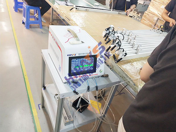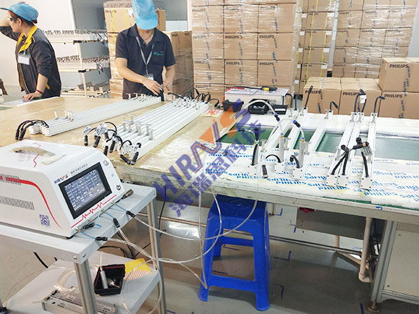 1. 由于通道灯的外形较大,不利于对其进行全封闭式的密封性检测,为了实现检测的无损性,我们使用了四通道的密封性检测仪,可以同时检测多个灯,使用直接检测的方式,只要将导管连接到转接口之后,就可以连接仪器进行测试了;