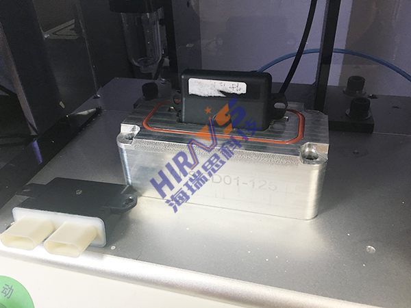 1. 由于汽车ECU脚踢控制系统下方有两个对外凸出的连接器,检测时只要将其插入专门为其定制的模具中进行固定,上下模具再进行闭合,形成一个密闭的空间;